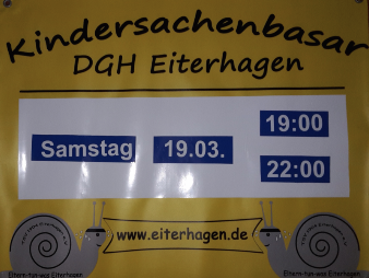 Am 19.03.2016 findet der Kindersachenbasar im DGH in Eiterhagen statt.